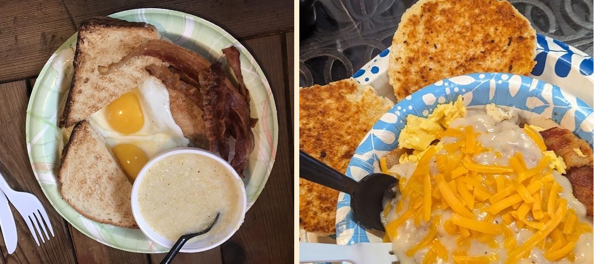The cathead biscuits are made from scratch. They are fluffy, delicious, and served warm. Many locals consider them the best in the Upstate of South Carolina. Pair them with a side of homemade gravy for a true taste of Southern comfort.